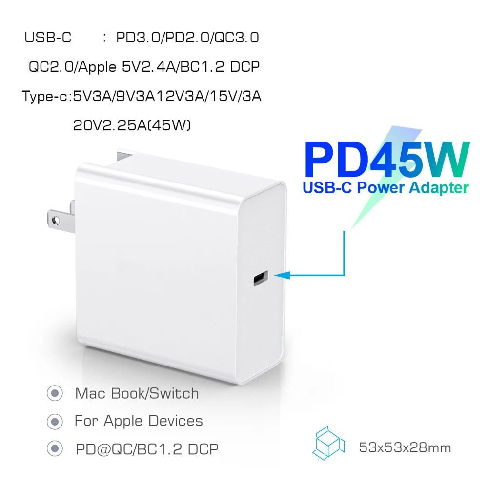 If You will buy for 45W 20V 2.25A USB C Charger Fast Type-C Wall Charger Mobile Phone PD Charger for MacBook Air / iPho, then 45W 20V 2.25A USB C Charger Fast Type-C Wall Charger Mobile Phone PD Charger for MacBook Air / iPho may be make you like